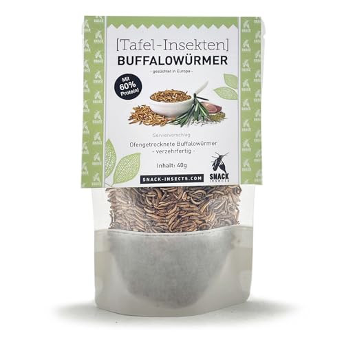Buffalowürmer - essbare Insekten von 'SNACK insects' - 40g feine Speise-Insekten zum Kochen und Essen SNACK insects Probier-Set: Mehlwürmer, Grillen, Buffalowürmer & Heuschrecken - Essbare Insekten zum Kochen & Essen BUFFALO-WÜRMER - Echte Insekten zum Essen - proteinreich & lecker Insektensnack